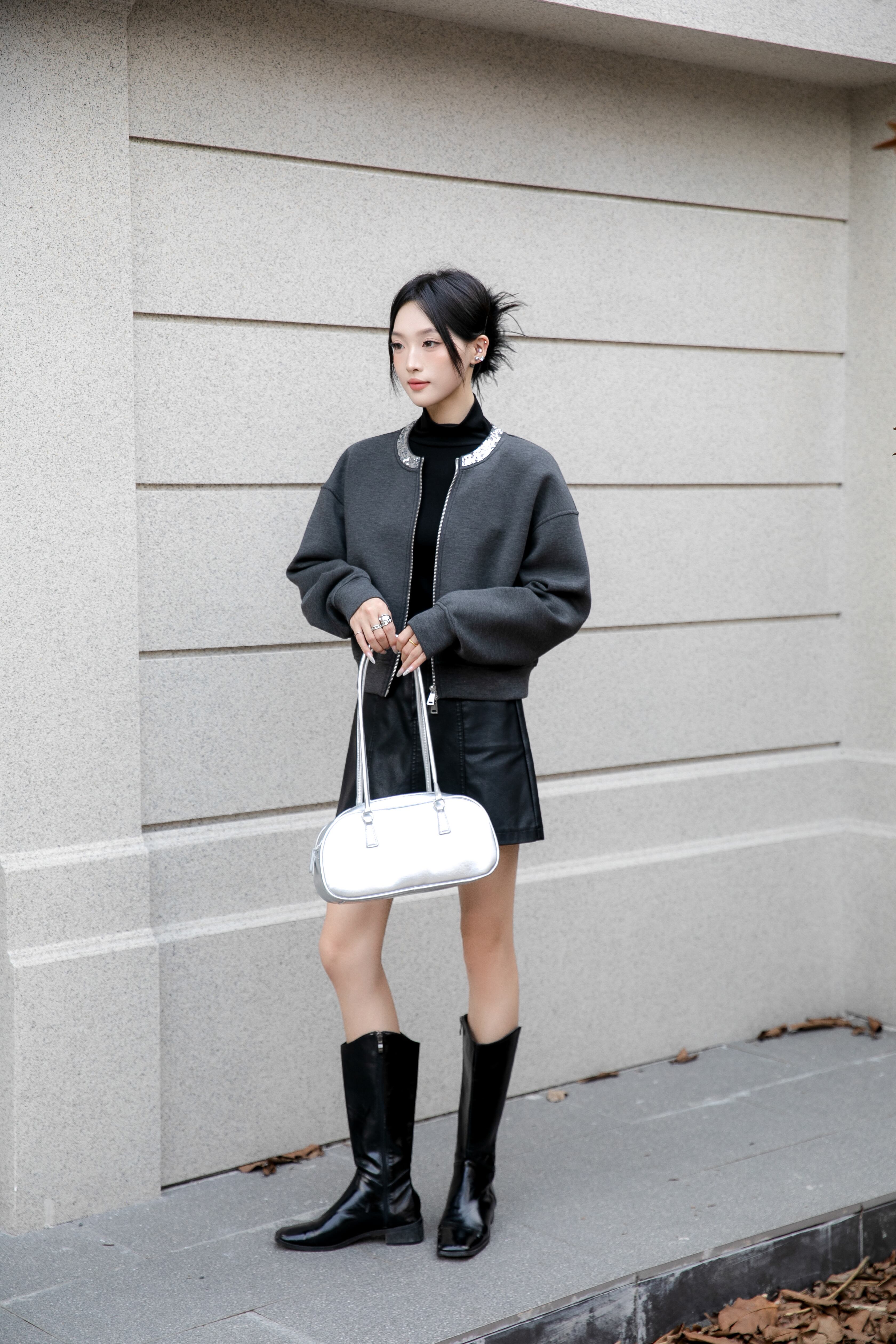 キラッと光るビジューがアクセ代わりになって、シンプルなコーデに映える✨