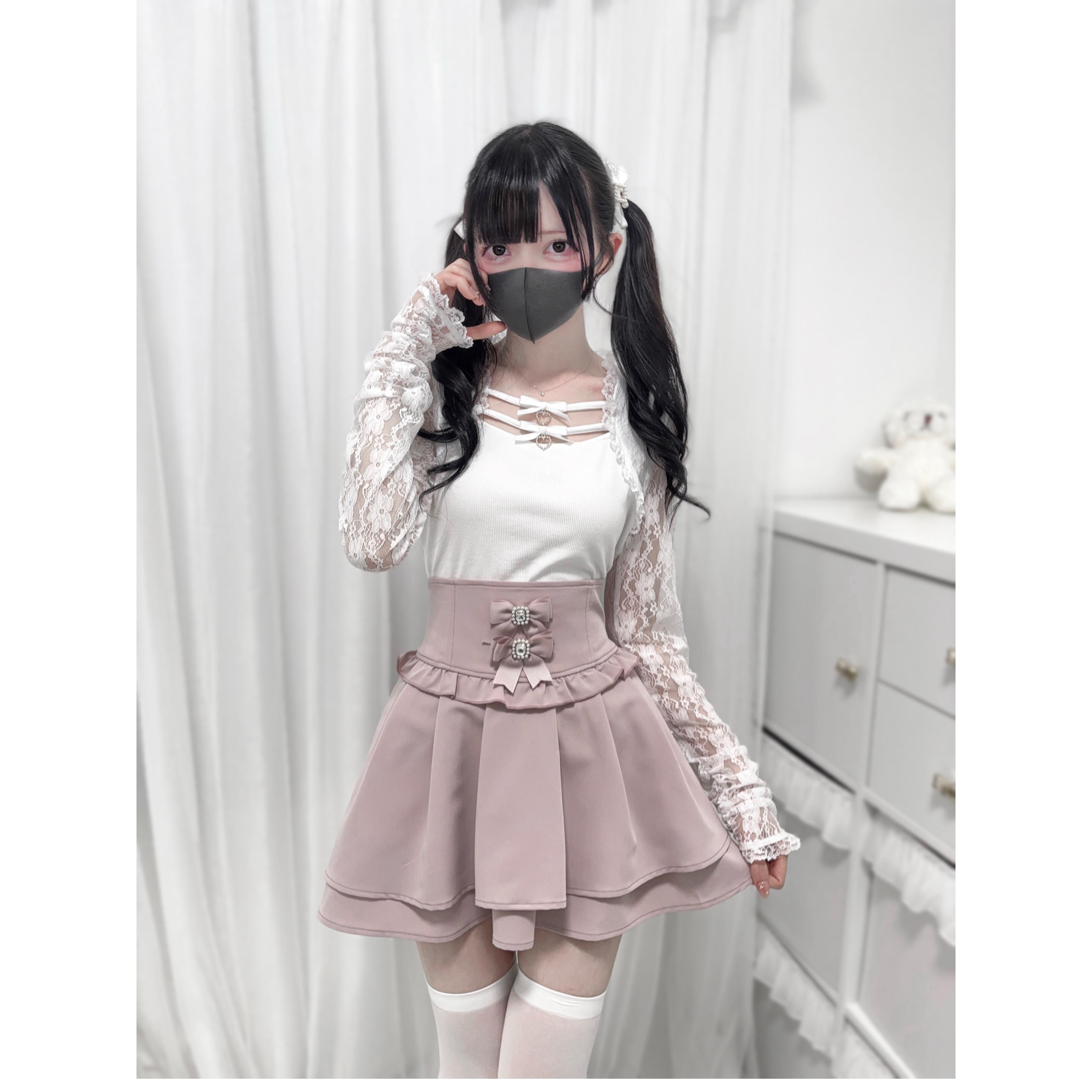 【先着予約セール】蝶々結び レースドッキングスリーブニットトップス